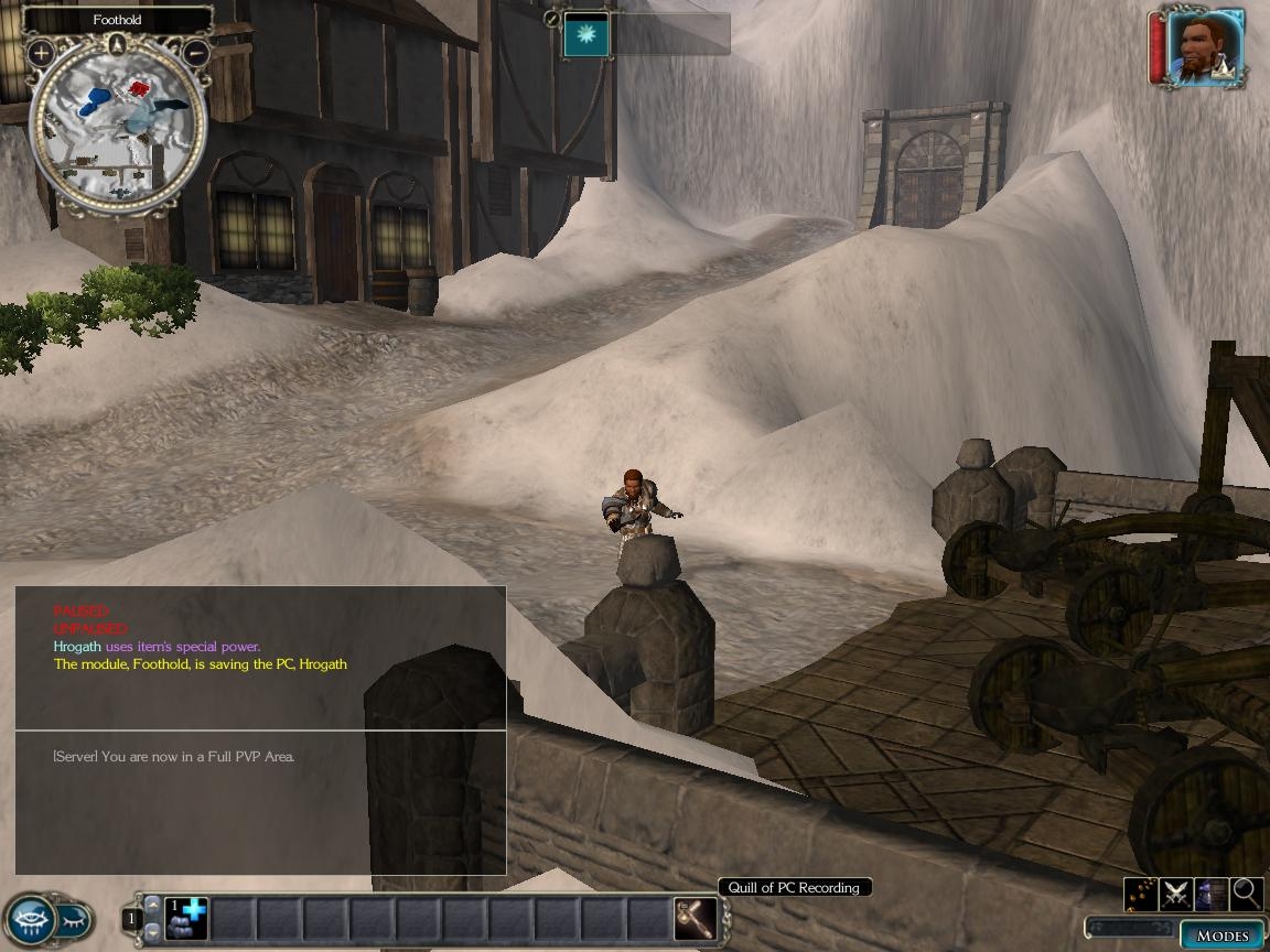 So glad you wrote back! I added a script to hand out the quill OnEnter and it works great. Checks to see if OC has quill, if not it hands it out! Im not a noob to scripting as i did alot in NWN but im no pro either. Ive notice the quill saves your location as well unless the server shuts down. If you could help me, all i need is something that will save location even on a server shutdown, and one that will save quest status. If you could help me in any way whatsoever it would be greatly appreciated! Your quill works excellent for me and i got it going just as you describe! If i can just get the other 2 things implemented to it id be rollin! Thanks for your great work for those of us who arent so great at the scripting end of things!