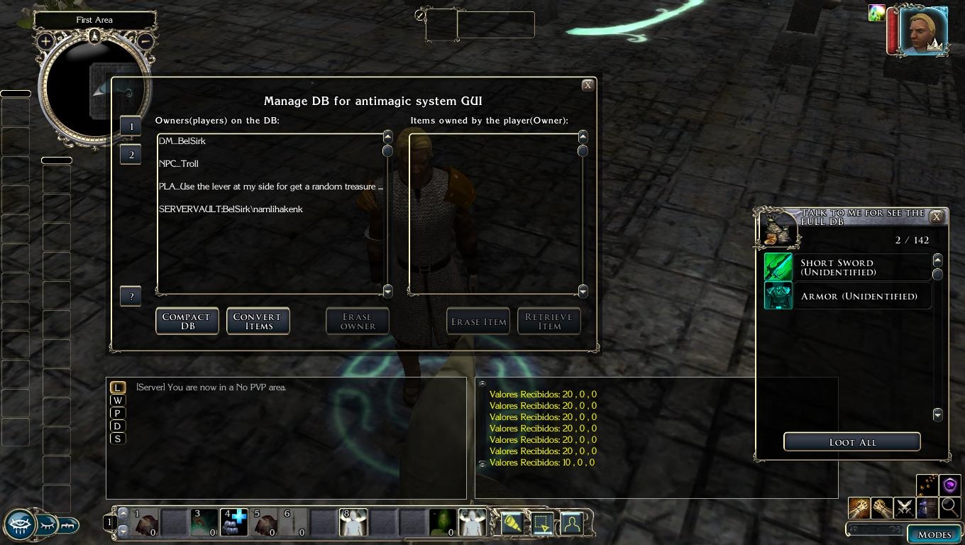 This is the GUI from the V 1.2 Here you can have access to the DB and can see the dm, NPC, Placeables (Random treasure) and player can give items to the DB.