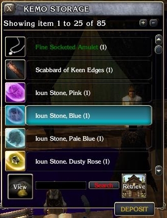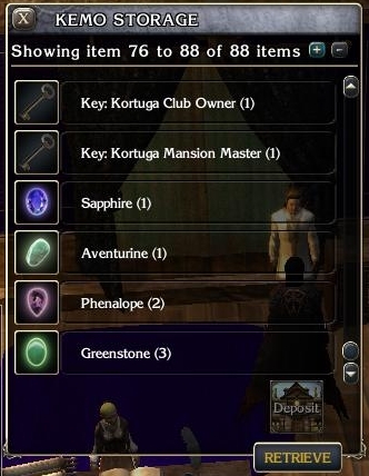 The KEMO Storage System allows PCs to store up to 1000 items (excluding containers) by speaking to a deposit box NPC.