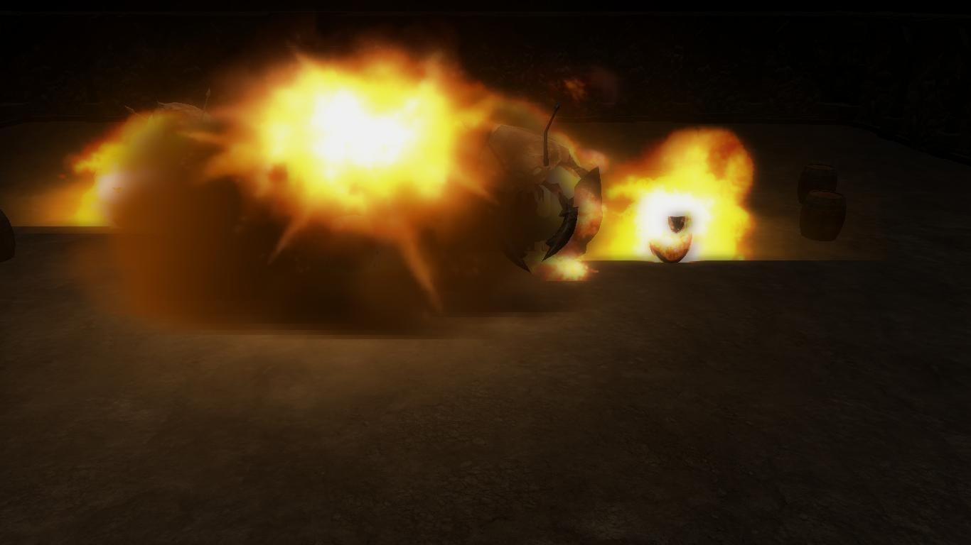 A large barrel of alchemist's fire which, when it takes fire damage, will explode, dealing 3d6 to all around it and a further 3d8 to all very close.