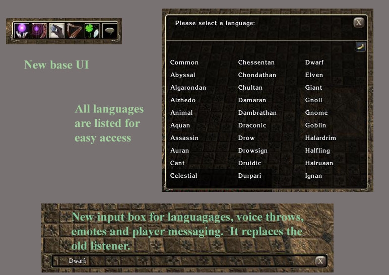 A new text entry box supports voice throws, languages, emotes, and player messaging through one nice interface - again with no listeners.