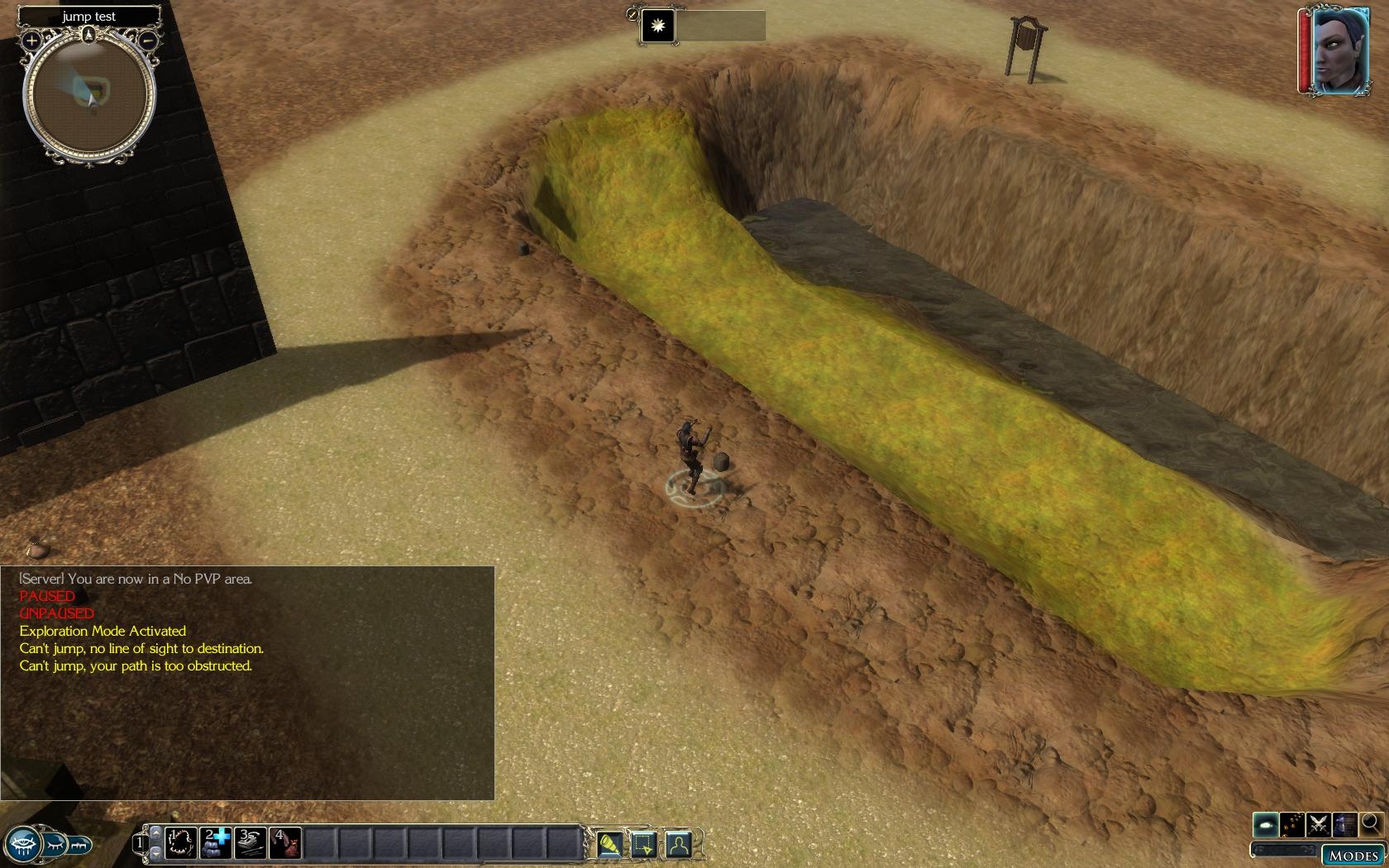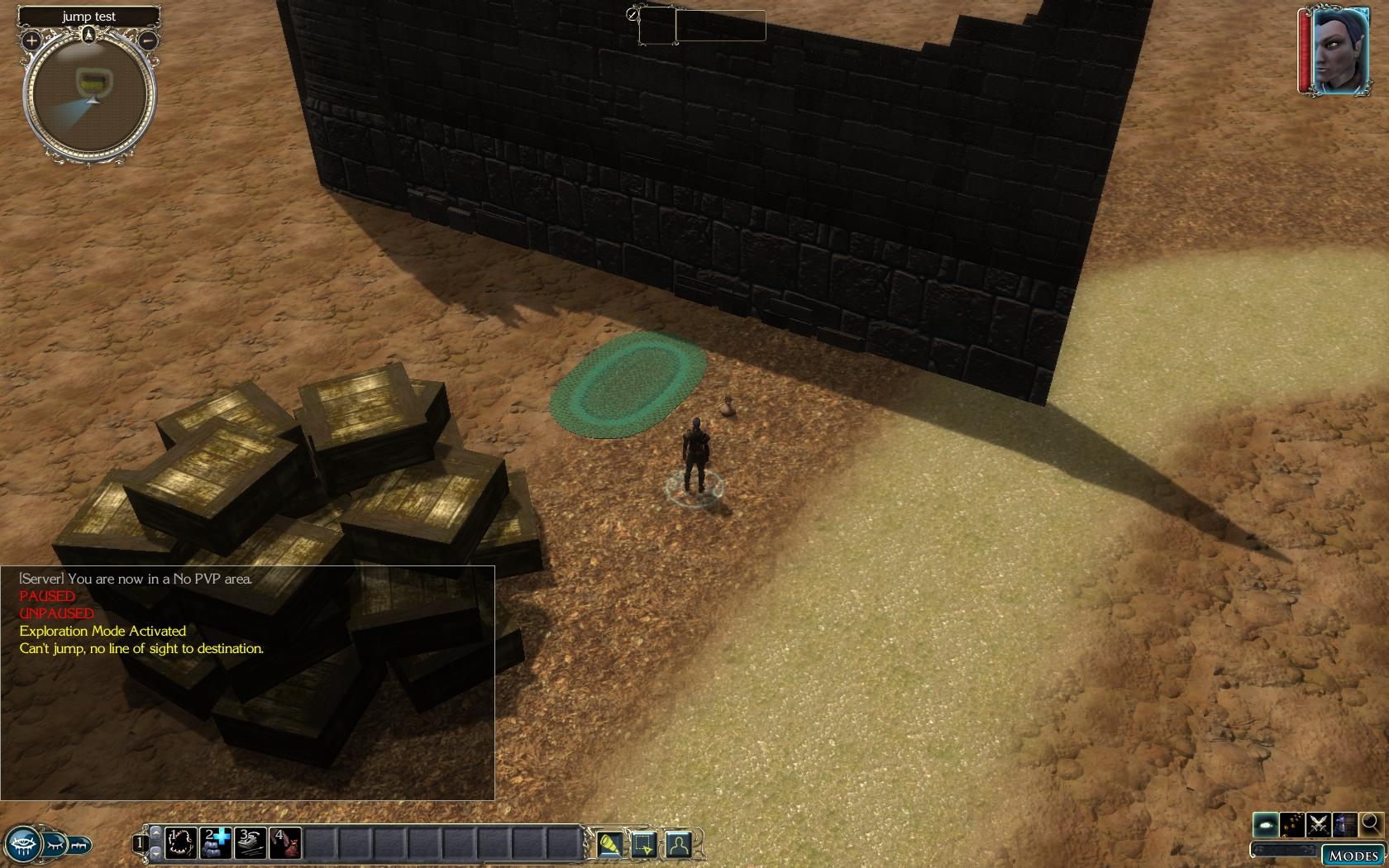 Included demo area includes jumping to a waypoint destination, and jumping dynamically around at area based on player facing. Dynamic jumping is blocked by sufficient obstruction, or lack of a line of sight to the destination. Falling damage is calculated how far you fall on the z axis (in other words, it reads from the actual map and determines the distance of the fall. Jumping/falling is handled per d20 srd rules for jumping and falling.