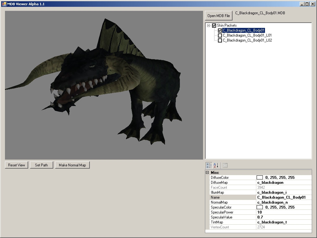 Excellent tool. Love the editor as that will make certain workflows so much easier. Would be nice to view the vertices and faces as an advanced option. Things like the Hook/Helm/Hair points have special values that may need to manually edited. Walk meshs also have that unknown value in the face data that would be nice to see. (Perhaps put this data in a GridView?) Anyway it would be nice to view all of the different packets that are contained in the mdb. Keep up the good work.