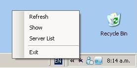 The server list can be displayed in a popup balloon by right clicking on the notification tray icon and selecting the Server List menu option. This will display the servers and their status. Only the first 255 characters will be displayed in this way, so only about 7 to 10 servers will be displayed. The order of the list depends on how the list is currently sorted, with the default order being the order they are in the Server List edit screen.