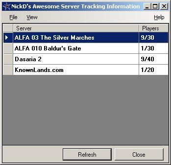 A new version is up. I put together a new sample serverlist.txt file in the zip file. There are 50 of them there, so it can take a good 20 seconds to load up and refresh. If you decide to use this new serverlist, I'd recommend deleting the servers you are not interested in, in order to speed up the refresh.