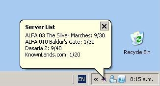 * The Balloon Text can only be 255 characters long. This means only around 7 to 10 (depending on the length of the server names) servers being tracked will be displayed in the server list popup balloon.