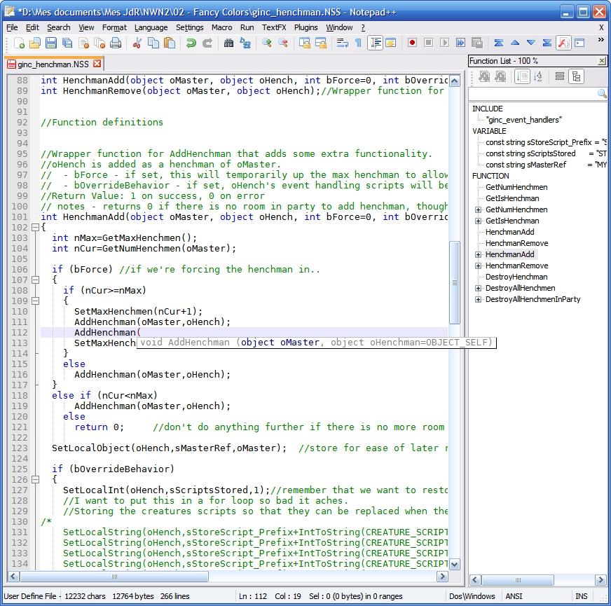 Name  Fancy Colors - NWScript support in text editors