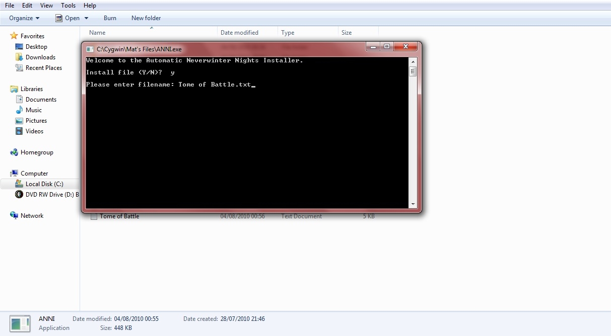 Demo files which will allow you to install Races of Faerun v2.2* and Tome of Battle v1.142. To use these, you must download the mods to your new ANNI/mods folder (e.g. /ANNI/mods/Races of Faerun).