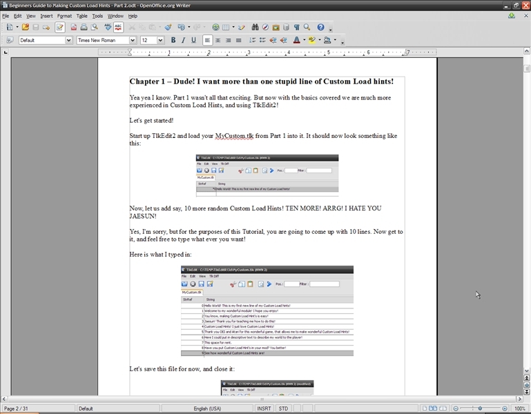 This Tutorial will guide you through creating custom �Load Hints� for use in your mods. This is Part 2 and will go into much more detail using Custom Load Hints. It will also show you how to add a Custom HAK file to your module. As well as making a module a Campaign. Because the advanced features of Custom Load hint's ONLY work with Campaigns, I will guide you through this process.