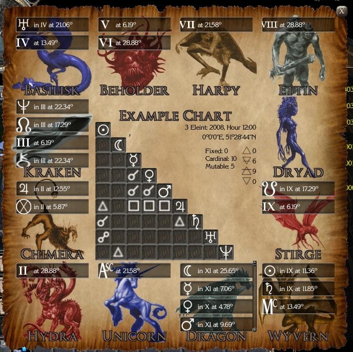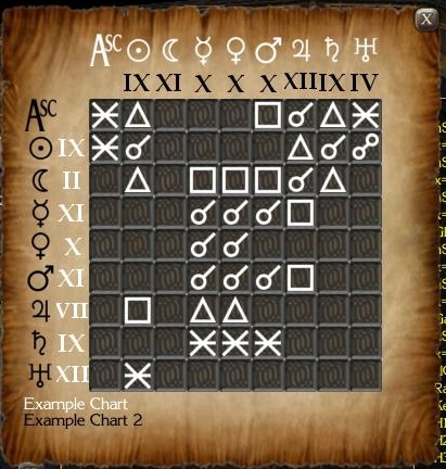 This system provides a compelling link between a player and their character, which I believe can lead to more immersive and dynamic game play. Essentially, a player can input his or her very own birth data (just as with any astrology website) and receive a remarkably accurate and highly unique reading. Should they create a second chart, they can likewise receive an in-depth analysis of the relationship between the two subjects.
