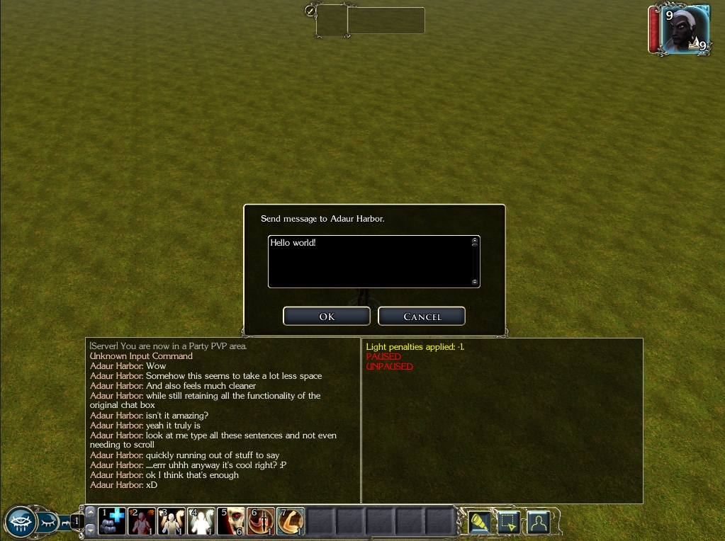 This UI change basically changes the "telling" to work similar to how it always worked in NWN1. You click on the player's portrait (here simply the line they spoke) in the chat, and then enter what you would like to tell them.