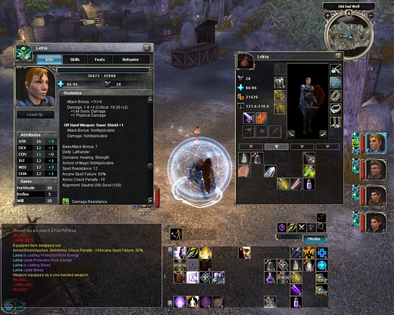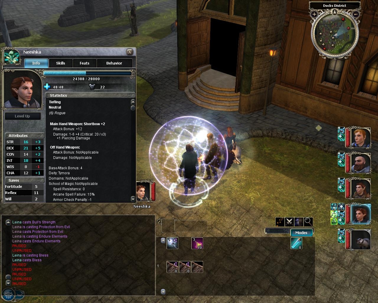 The character statistics in the default UI (race, class, mainhand/offhand, etc.) take up a whole lot of unnecessary space. This mod removes the icons and reduces the spacing of the text, making it more similar to the stats pane in NWN1. Feats and skills listings occupy roughly half the original space and retain their icons.