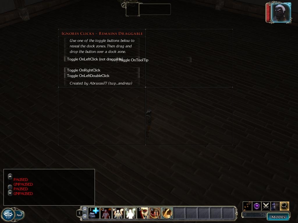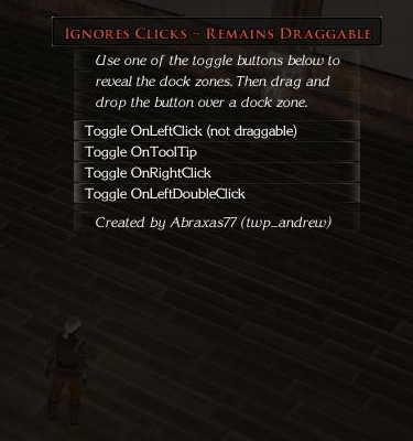 Update: I fixed the last two toggle buttons (OnRightClick and OnLeftDoubleClick). Both work now. The OnLeftClick toggle button is now draggable. I made a few visual enhancements. _________________________ Lead Script Design The World of Palladium II DMFI GUI Guru