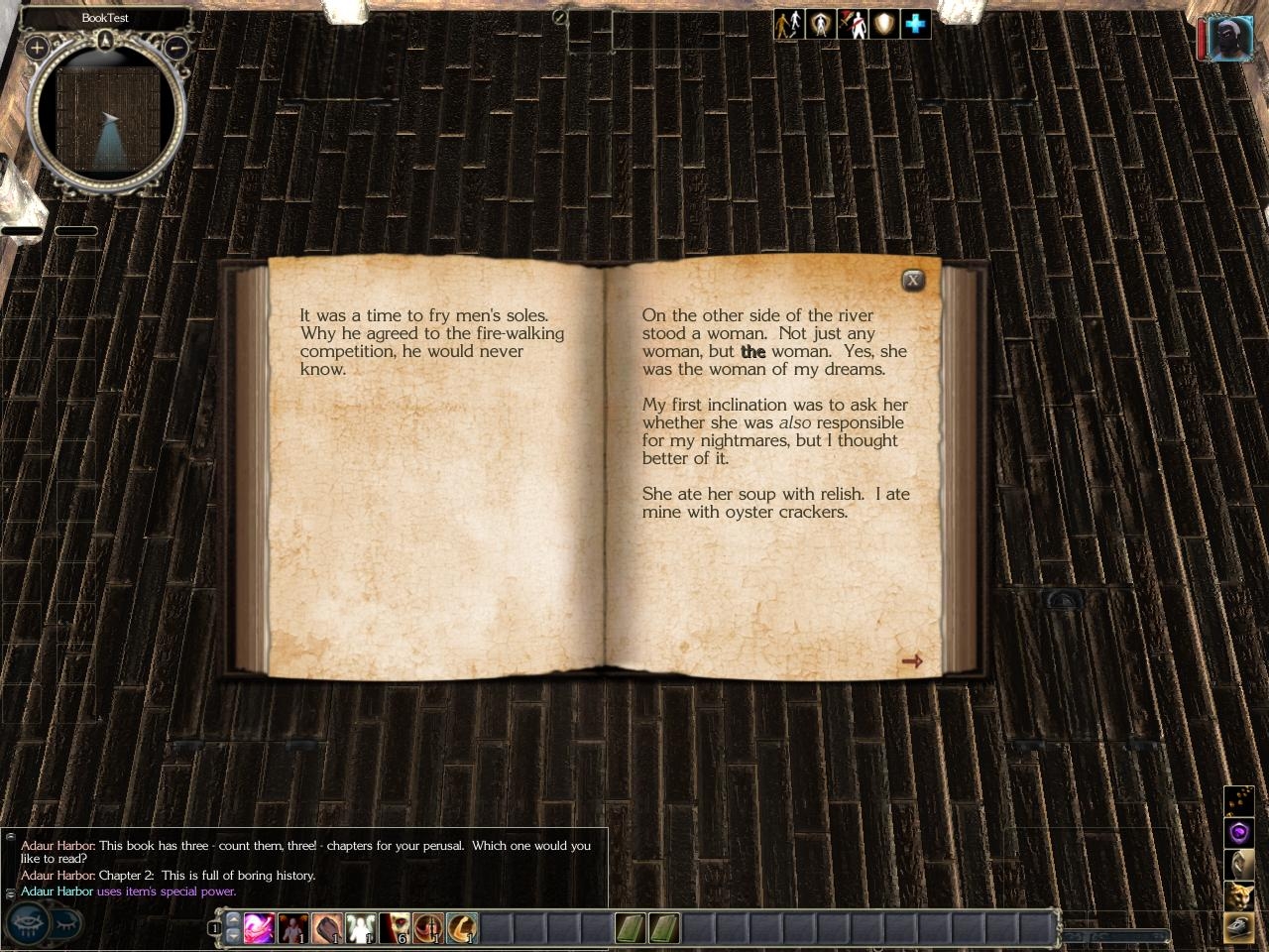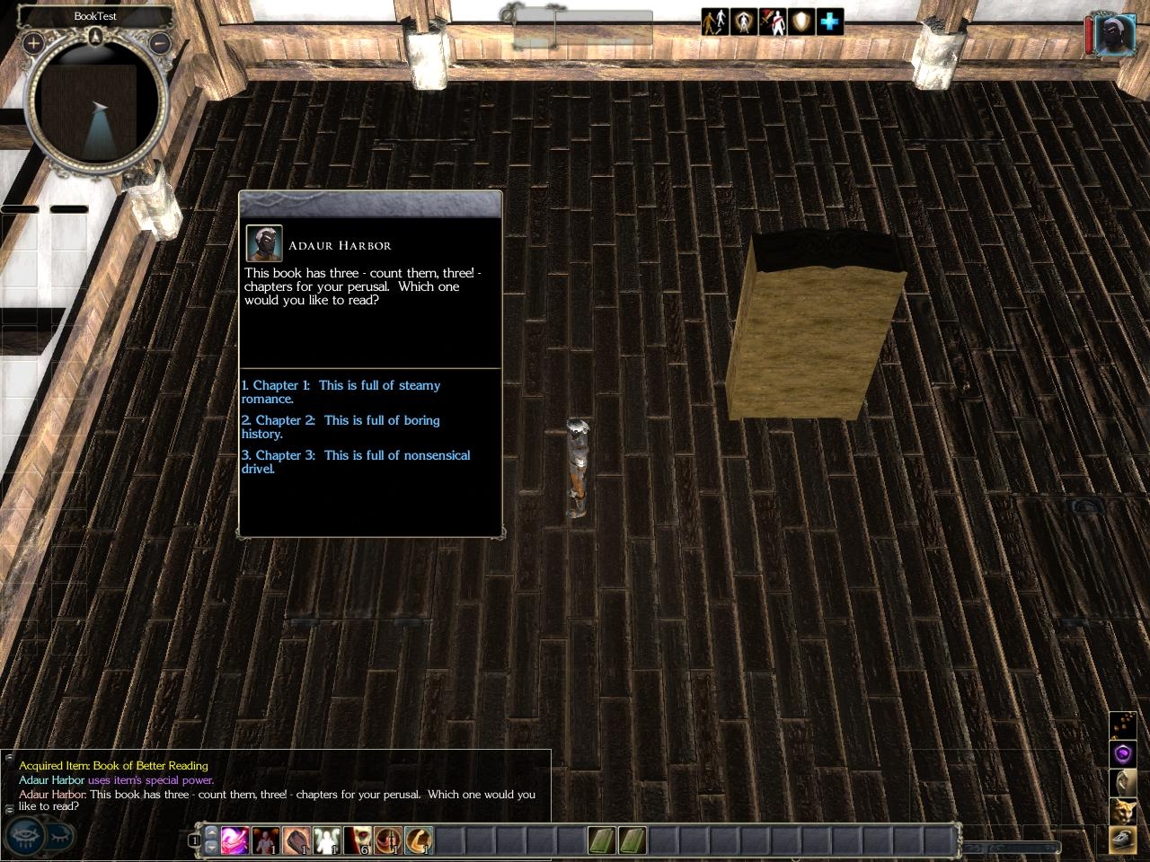 - Totally data-driven: A 2da file defines the structure of the book, and a tlk file contains the text.