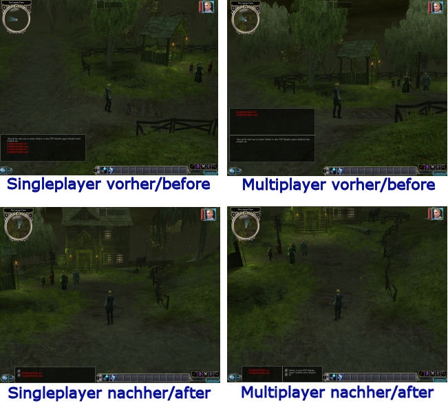 This small, but nice patch changes the size and position of the 2 messagesboxes. Now the chatboxgui is clearly arranged and appears in the old nwn 1 style. Especially important in MP with a low resolution. (see screenshot: before,after)