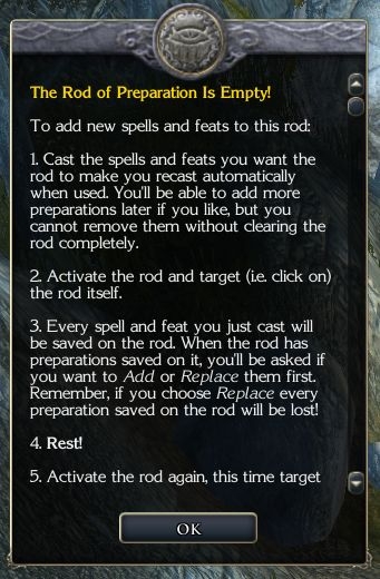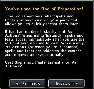 The "Rod of Preparation" helps you quickly and consistently recast the same party-buff spells and feats.