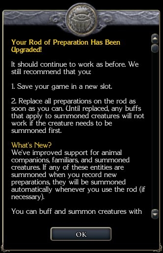 Note that if you used the previous preview release, this version will delete the "Book of Preparations" the old release created.