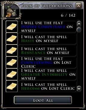 If you downloaded an earlier 0.04 preview, this release will delete your preparation book. The previous preview release changed a core 2DA file in NWN2. I didn't want the end user to need to reconcile my 2DA file with any modules that used custom bags.