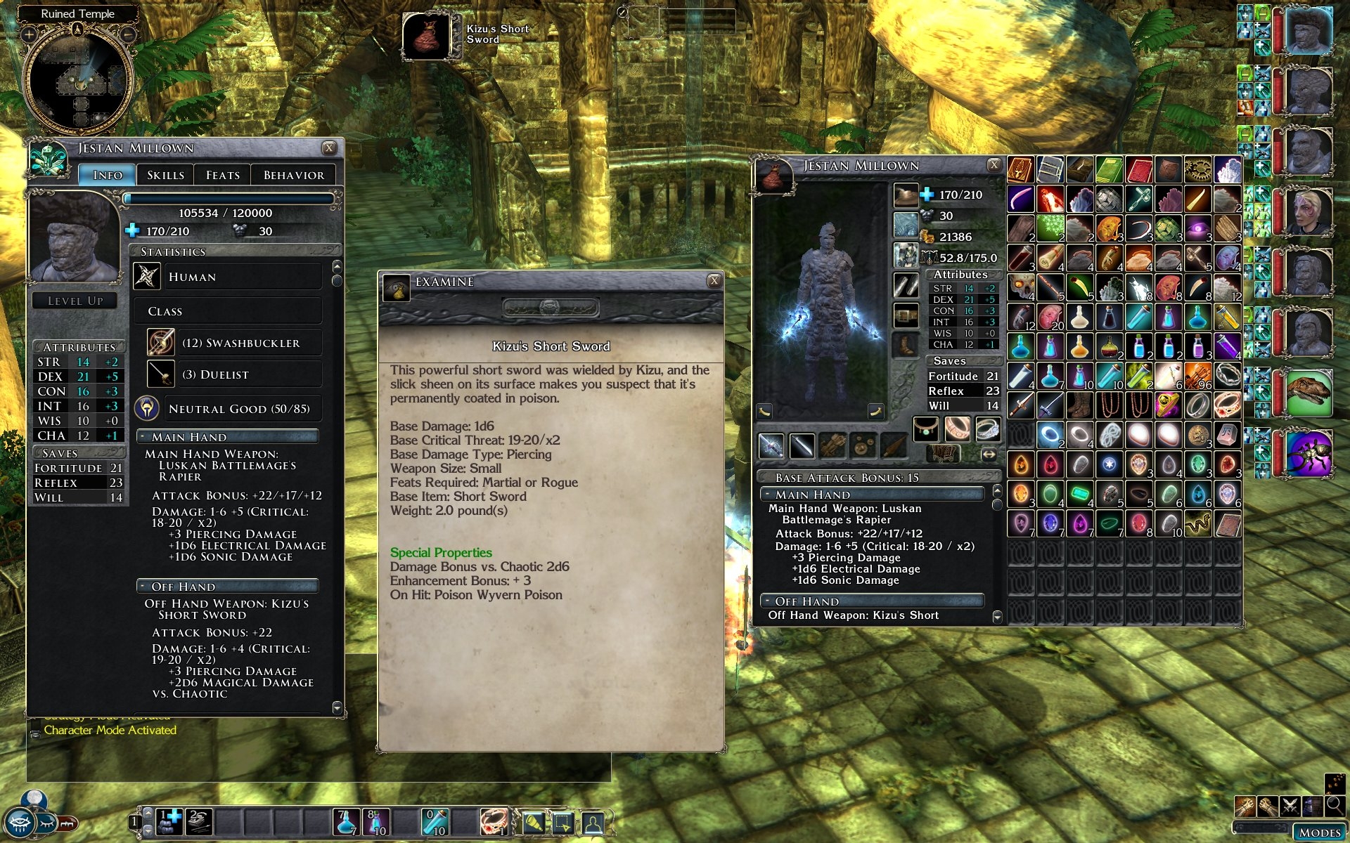 This mod aims to provide a better NWN2 UI experience at higher resolutions. By default, the NWN2 UI does not scale and becomes increasingly difficult for some players to read at resolutions of 1280x1024 and above.