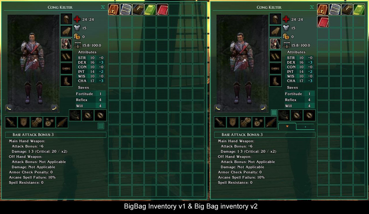 - Resized Known Spells and Memorized Spells to be the same size as the Inventory, changed look, replaced spell level icons with the ones from NWN1