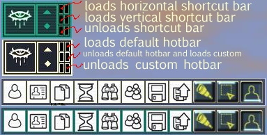 4. The bottom button near the playermenu (the three buttons on the right of the playermenu) unloads the default hotbar and loads the custom one.