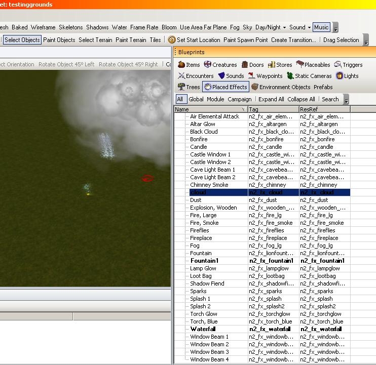 5) Placed the cloud, fountain and waterfall effects in module (effects do not appear in area preview, although effects helpers do).