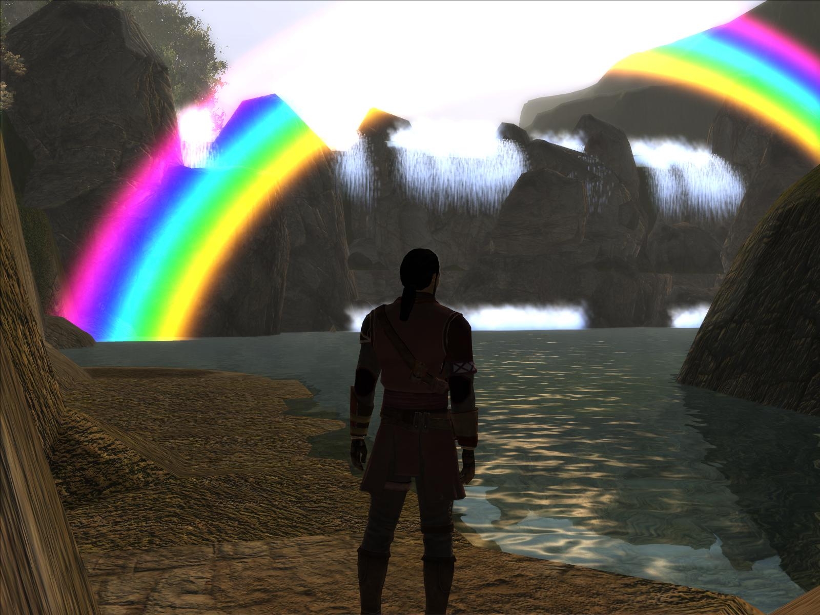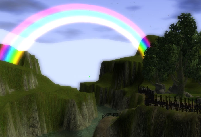 No sky is complete without a colorfull rainbow. It looks best if you place it out of reach for the PC's and against mountains and the sky. Set the light and weather like it would be a summer day just after the rain. Try it together with my flock of birds VFX.