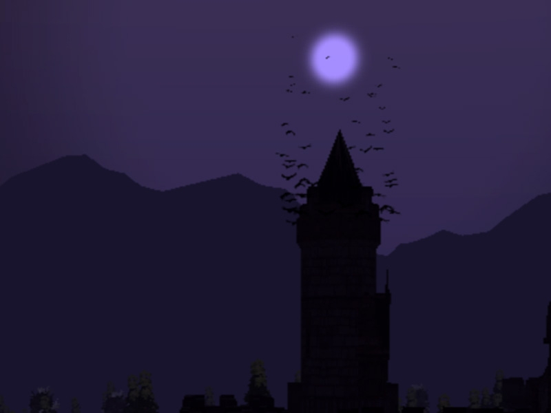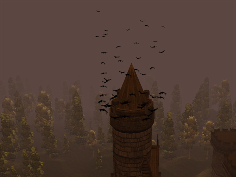 Here is a low resolution WMV-file of the bats swirling around the wizards tower: Link or a even lower resolution clip at YouTube: Link