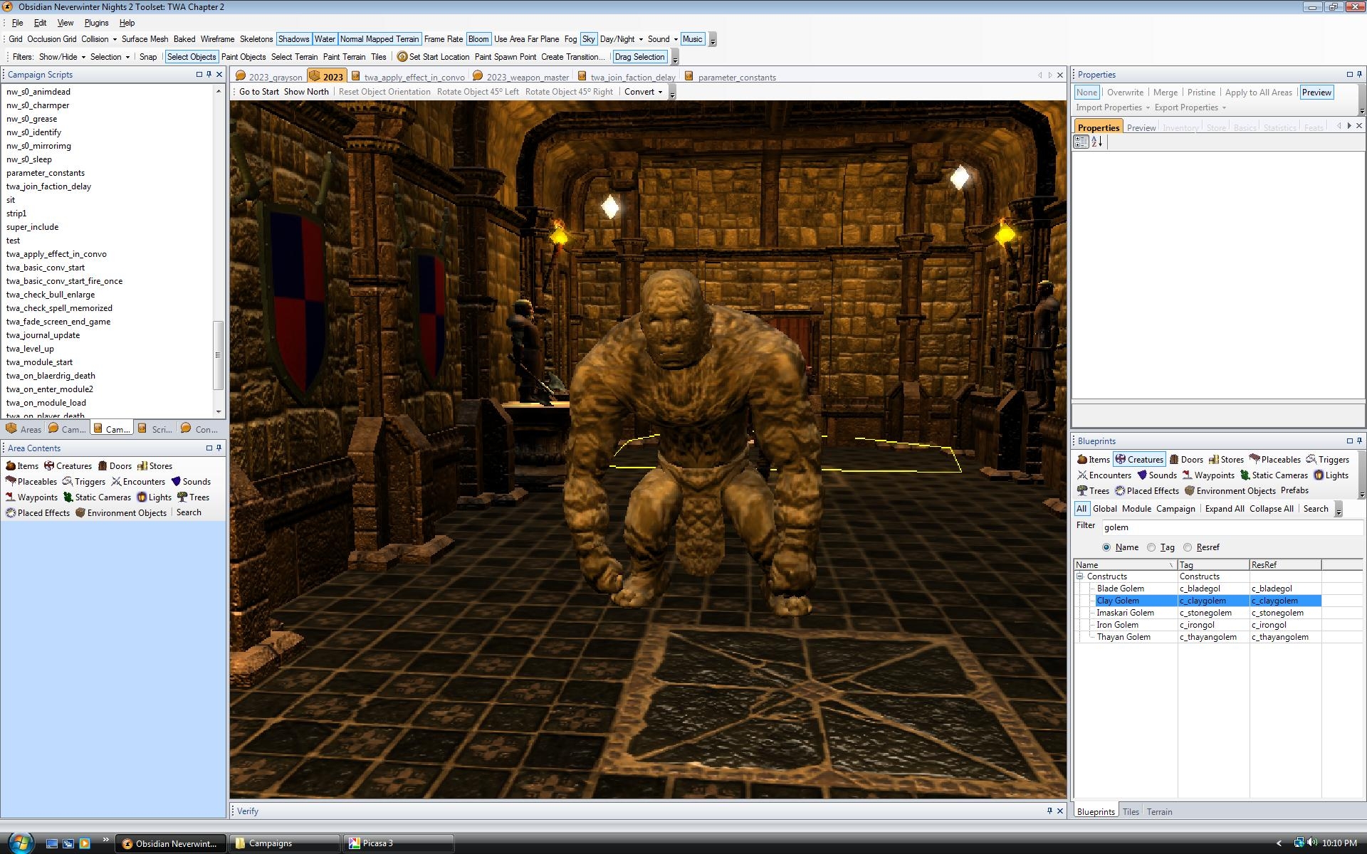One other thing. If you just want to make the stone golem, in the toolset, pull up a clay golem and in the properties tab, look in the Appearance (visual effect) field and choose "stone statue". _________________________ The Wizard's Apprentice - A single player adventure for spellcasters guaranteed to rumple your robes and warp your wand!