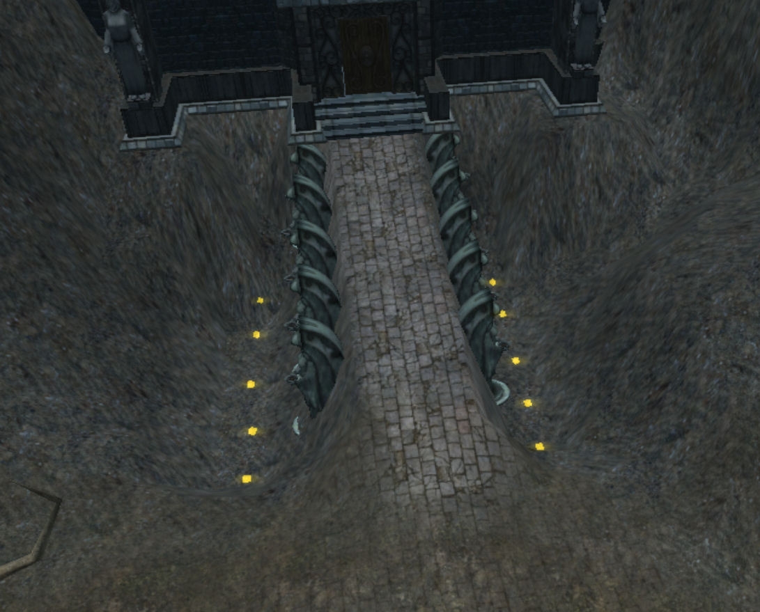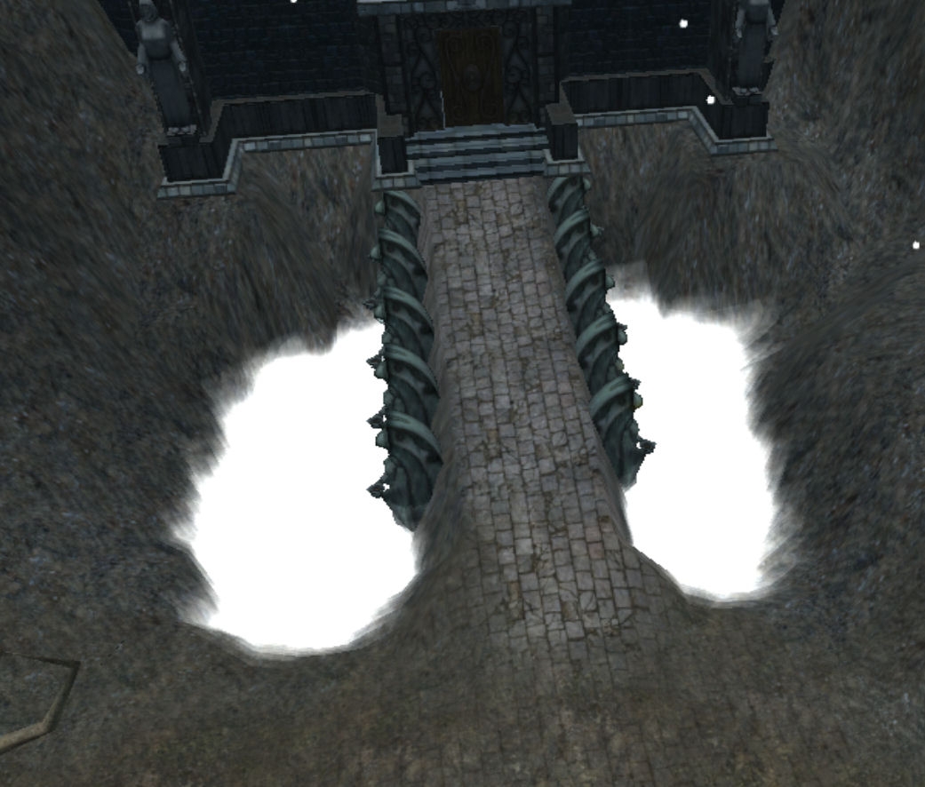 in the screenshots you provided, the cloud cover model made it look like the pits on the sides of the castle led to non-existence.